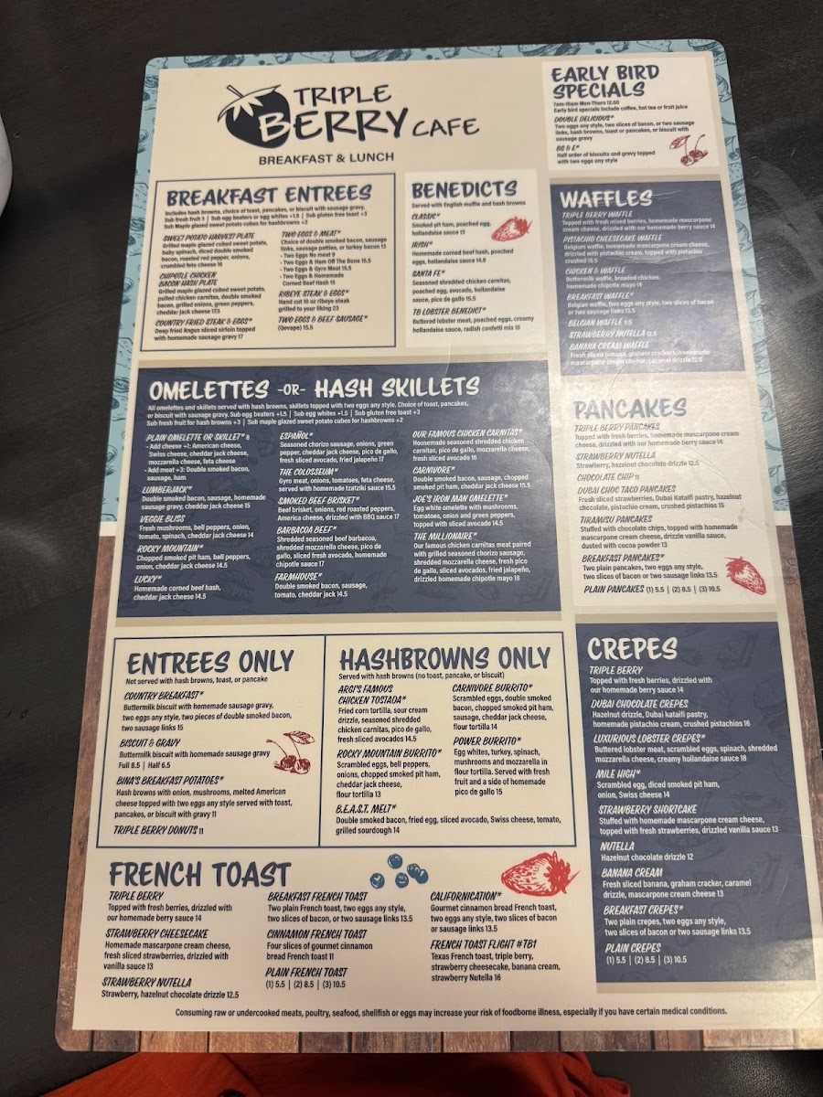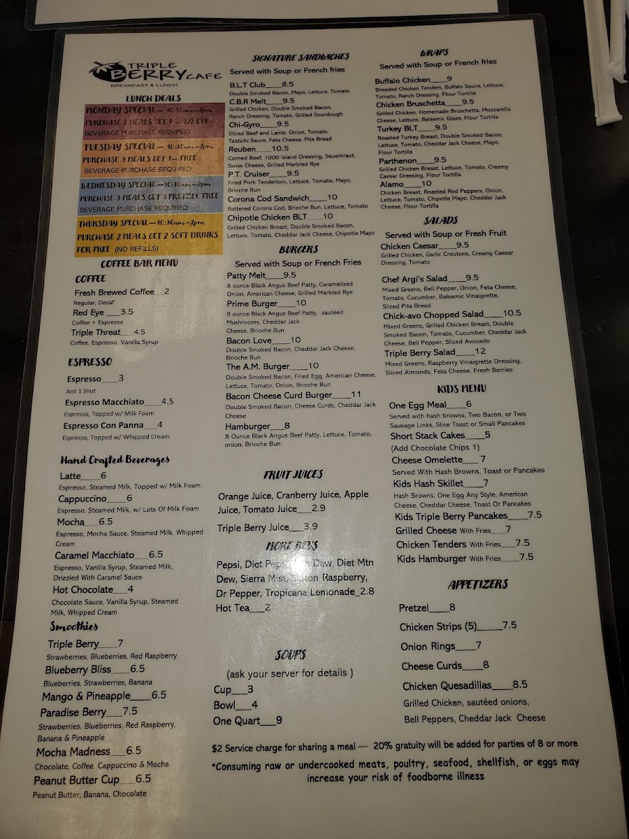 The menu at Triple Berry Café offers a welcoming mix of comforting breakfast classics and casual, satisfying dishes that suit a variety of tastes. Whether you’re stopping by for a relaxed morning meal or a family brunch, the selections balance familiar favorites with thoughtful twists.
