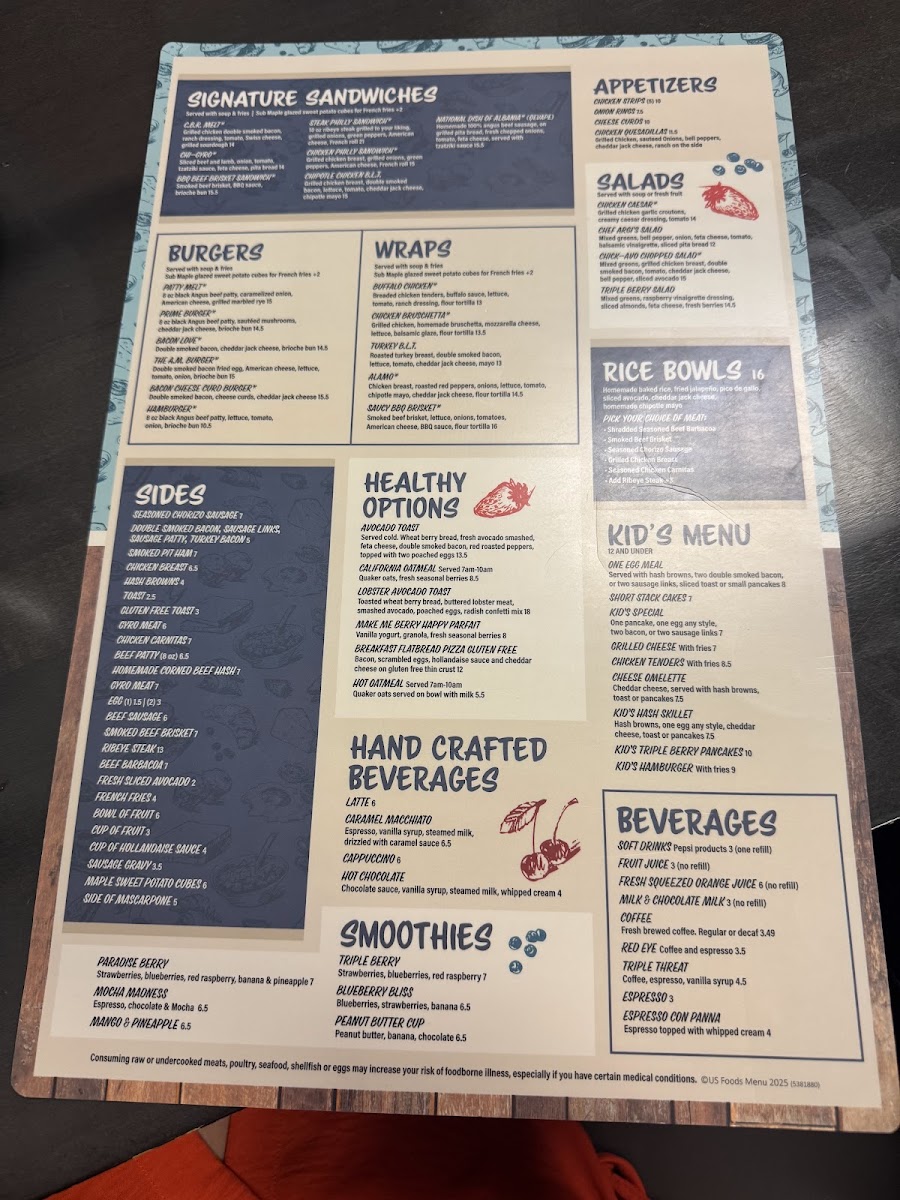 You’ll find a range of hearty options like the Irish Benedict, Rocky Mountain Burrito, and traditional sides such as hashbrowns and sausage links, alongside sweeter choices like the Strawberry Cheesecake French Toast, Triple Berry Crêpes, and Blueberry Cheesecake Pancakes. The café’s dedication to fresh ingredients and balanced flavors shines through each plate, making it easy to enjoy both savory and sweet throughout the day.